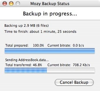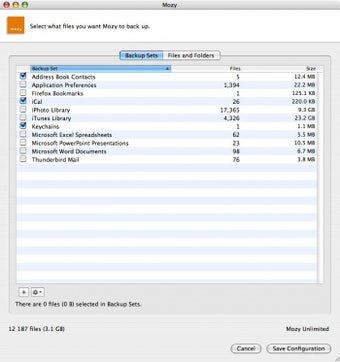 Il vantaggio principale del programma rispetto ad altri simili è una procedura guidata (in inglese) che non lascia niente all'improvvisazione, il che lo rende estremamente intuitivo per chiunque. Inoltre, MozyHome Backup riconosce e raggruppa i file per formato, consentendo una selezione più rapida. Lo svantaggio è che durante il backup, nonostante Mozy Remote Backup lavori in background, rende il sistema fastidiosamente lento, svantaggio che puoi aggirare programmando la fase di copia nei momenti di inattività del tuo Mac.